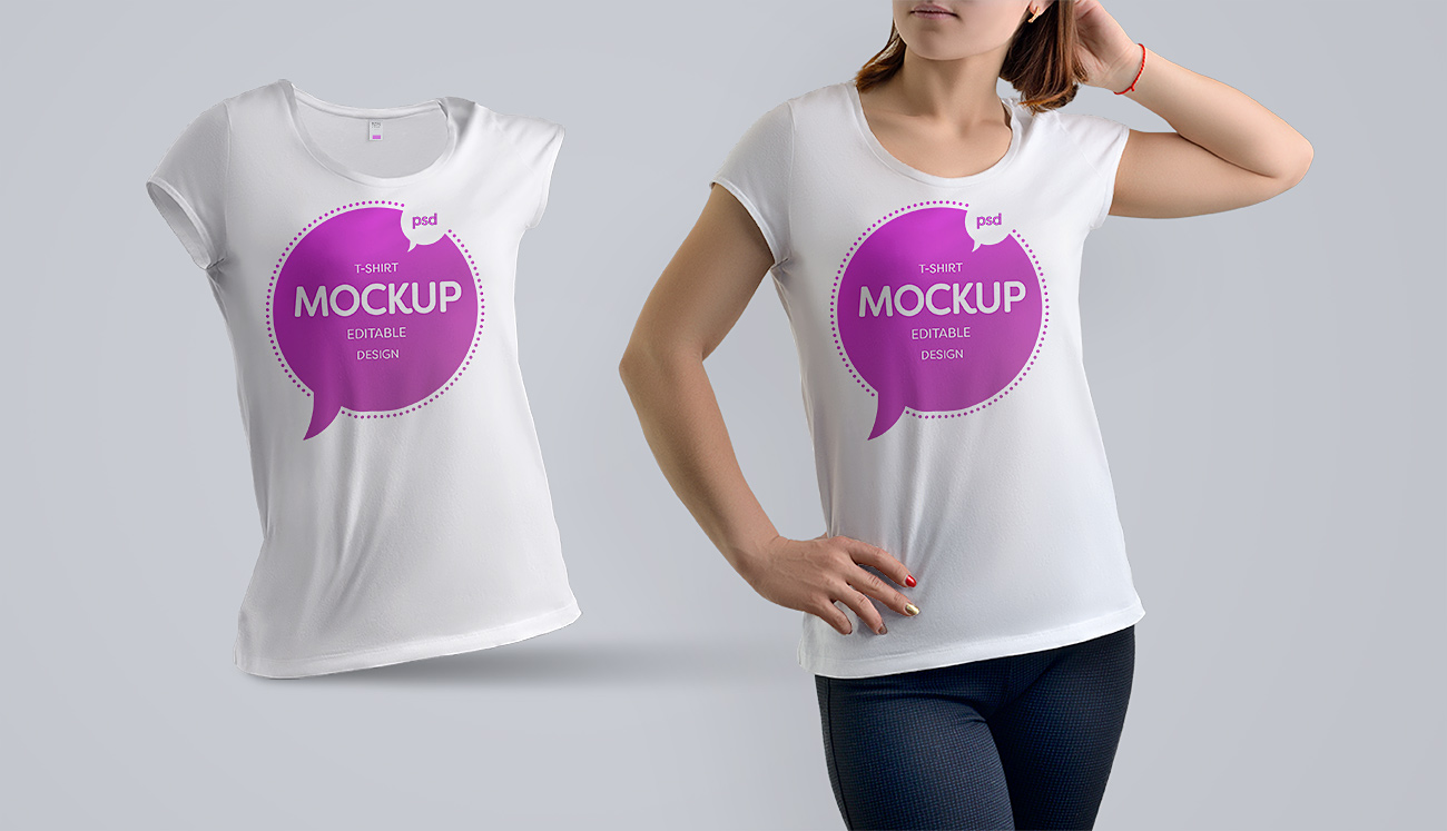 Woman t-shirt free PSD mockup to present your design ideas with a realistic look. Very simple edit with smart objects. This mockup is free for both personal and commercial purposes.