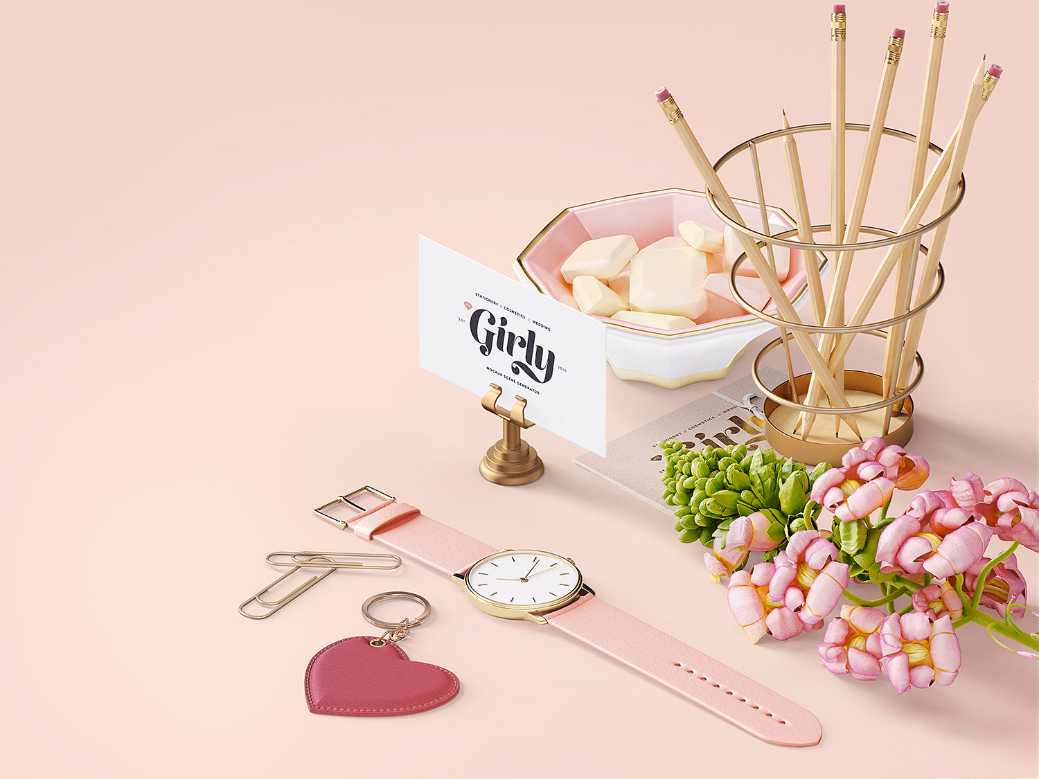 Free girly branding mockup scene creator is available to present your branding design. You can use different angles to create awesome presentations. They are easy to use as well. The Scene Generator allows you to generate your own unique scenes by just dragging and dropping items via Photoshop. It’s available in a high resolution of 4000 x 3000 px. Free for your personal and commercial projects.