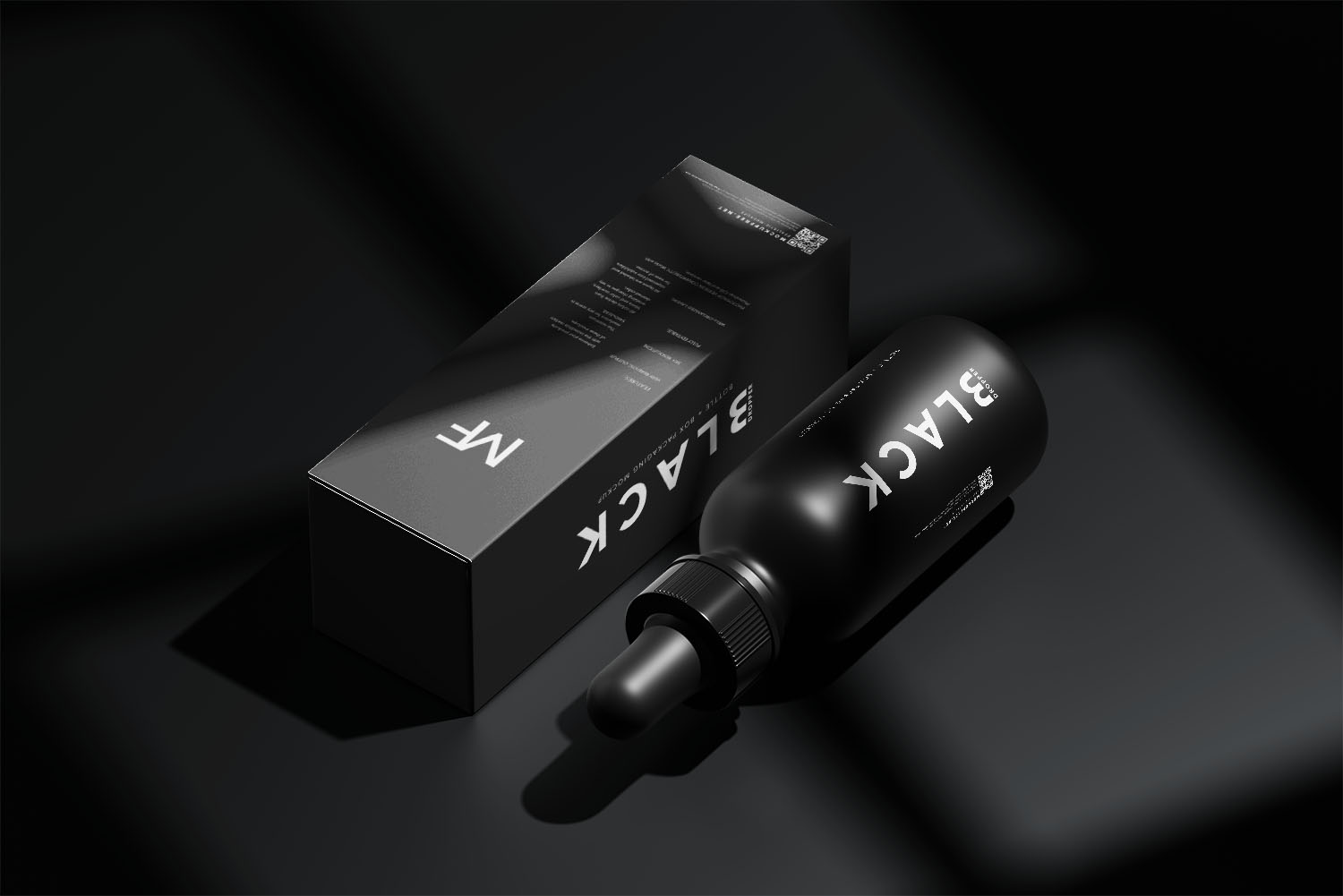 Black Dropper Bottle with Box Mockups is a sophisticated and versatile template designed for showcasing your premium skincare, essential oils, or beauty product packaging designs. This mockup set includes a high-quality black dropper bottle accompanied by an elegant box, offering a professional and impactful presentation for your branding. Perfect for product showcases, portfolio presentations, or client pitches, these mockups provide a realistic preview of your designs in a refined and upscale context. Download this set for free and elevate your product packaging presentations with these sleek and stylish black dropper bottle and box mockups.