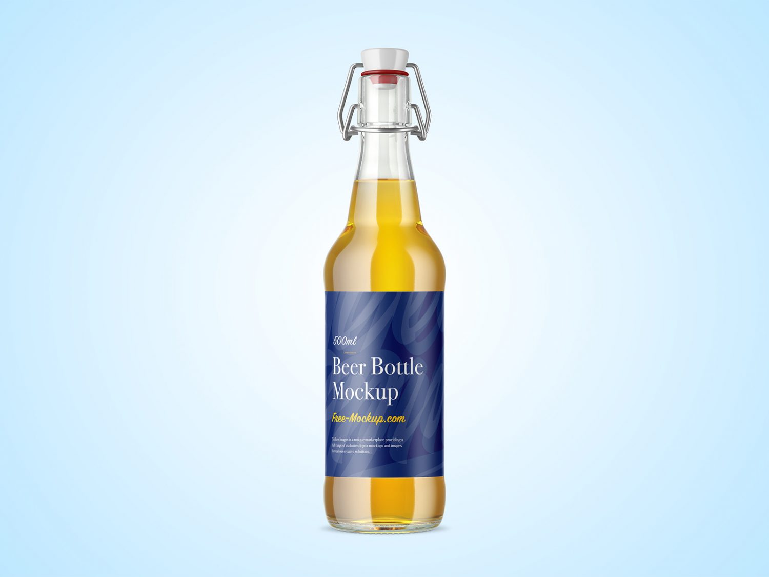 Clear Glass Beer Bottle Free Mockup with Swing Top Cap to showcase your branding packaging design in a photorealistic style. Simple edit with smart layers. Free for personal use only. Special thanks to Yellow Images for this freebie!