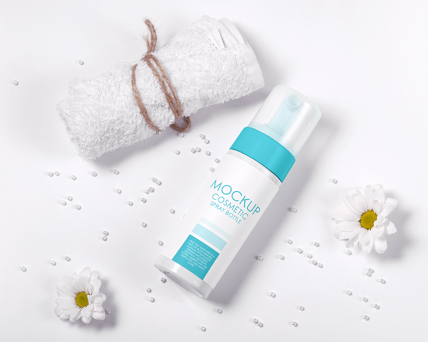 Cosmetic spray bottle mockup to showcase your package design. Smart Objects allows you to edit the mockup very easily. Just place your design inside them.