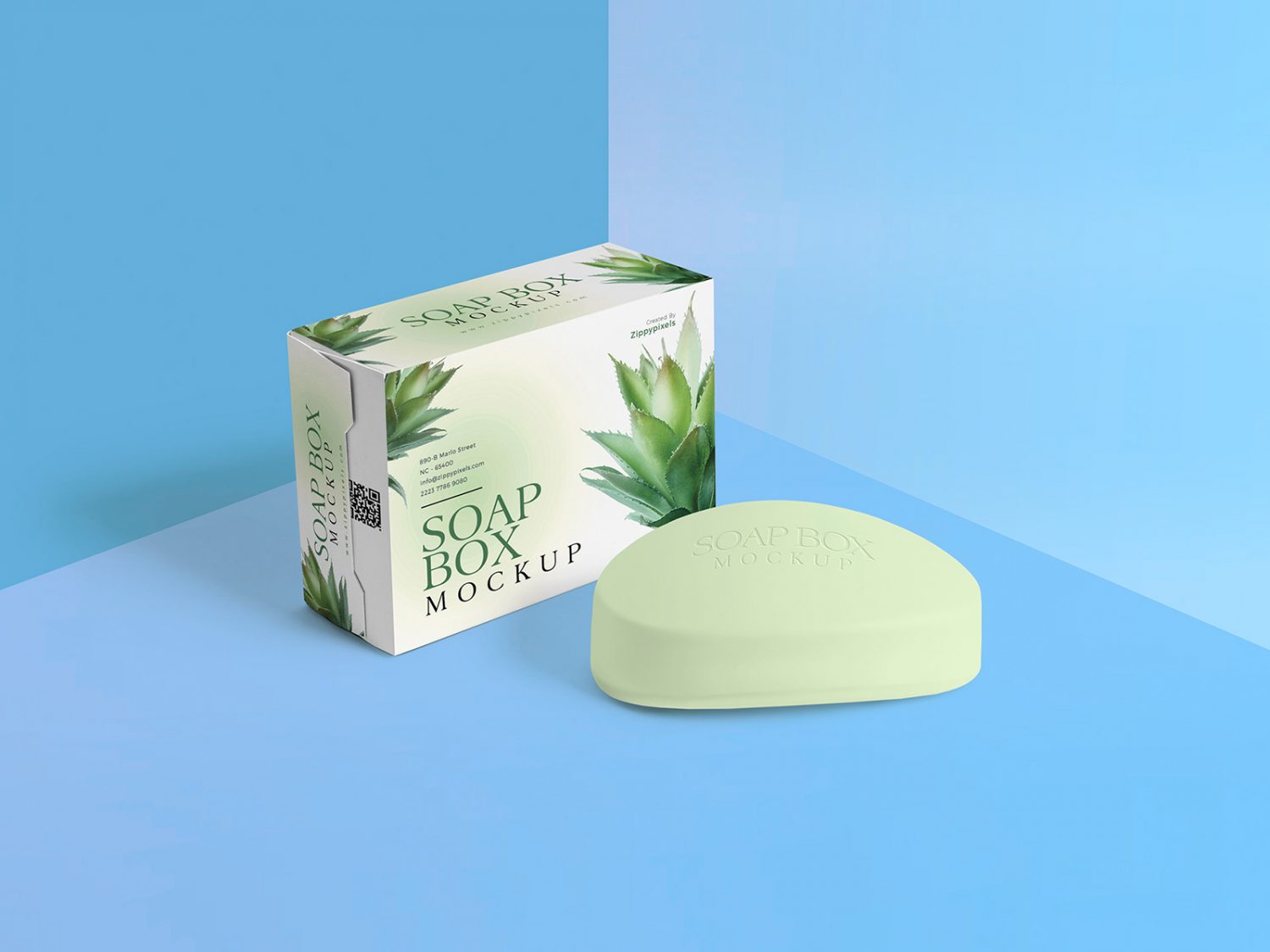 Packaging box & soap free mockup to showcase your branding design in a photorealistic look. This mockup is free for both personal and commercial purposes. Enjoy!