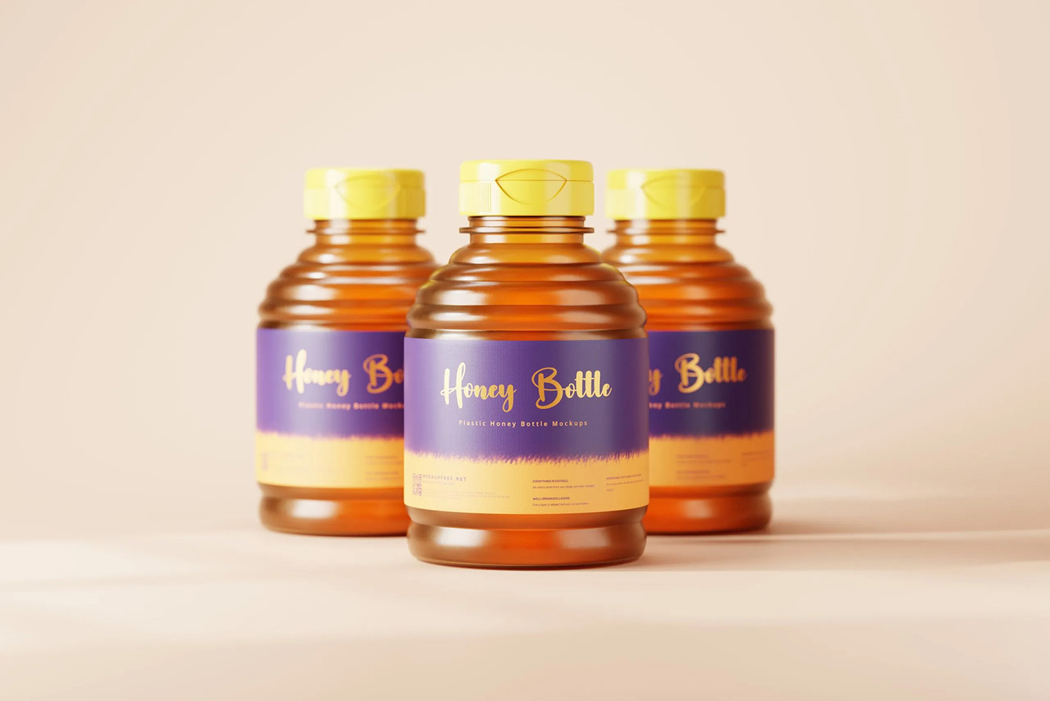 Transform your honey packaging designs effortlessly with our Plastic Honey Bottle Free Mockups. This realistic and high-quality mockup set features plastic honey bottles, offering a professional and captivating presentation for your label designs, branding, or promotional visuals. Ideal for beekeepers, honey producers, or graphic designers seeking a polished way to showcase their work, these free mockups are easy to customize. Download now and bring your honey bottle designs to life, providing a realistic preview of your product in a visually appealing and market-ready context.