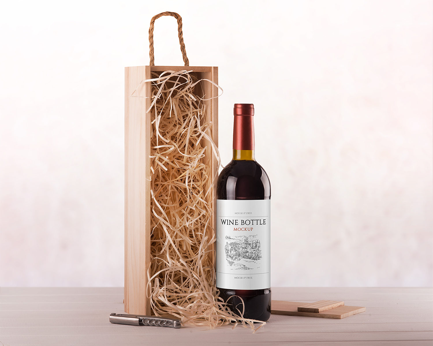 Wine bottle free PSD mockup to showcase your branding design in a photorealistic look. Smart Objects allow you to edit this mockup very easily. Just place your design inside them. Enjoy!