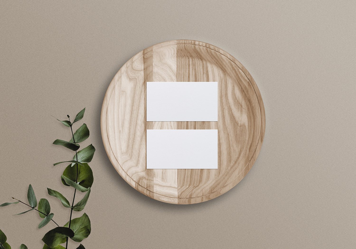 Business card mockup on a wooden tray to showcase your branding design in a photorealistic look. This mockup is free for both personal and commercial purposes. Enjoy!