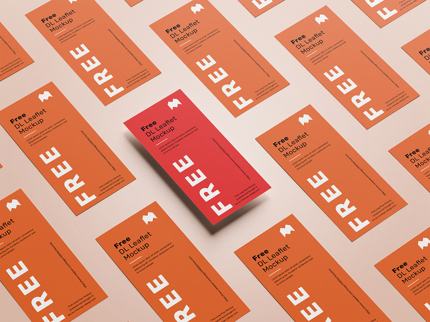 DL Leaflet Grid Free Mockup o showcase your DL flyer design in a photorealistic look. This free PSD mockup is easy to edit with smart objects. Have fun!