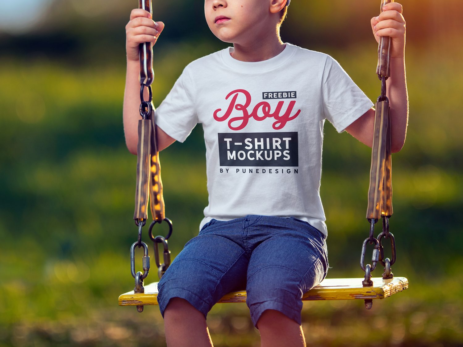 Free Boy T-Shirt Mockup to showcase your fashion design in a photorealistic style. Simple edit with smart layers. Free for personal and commercial use. Have fun!