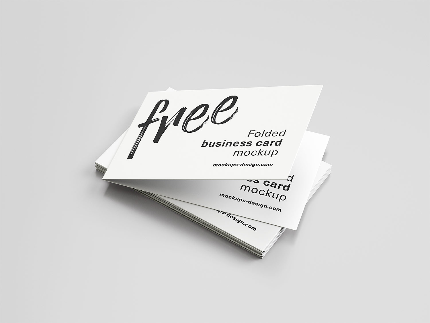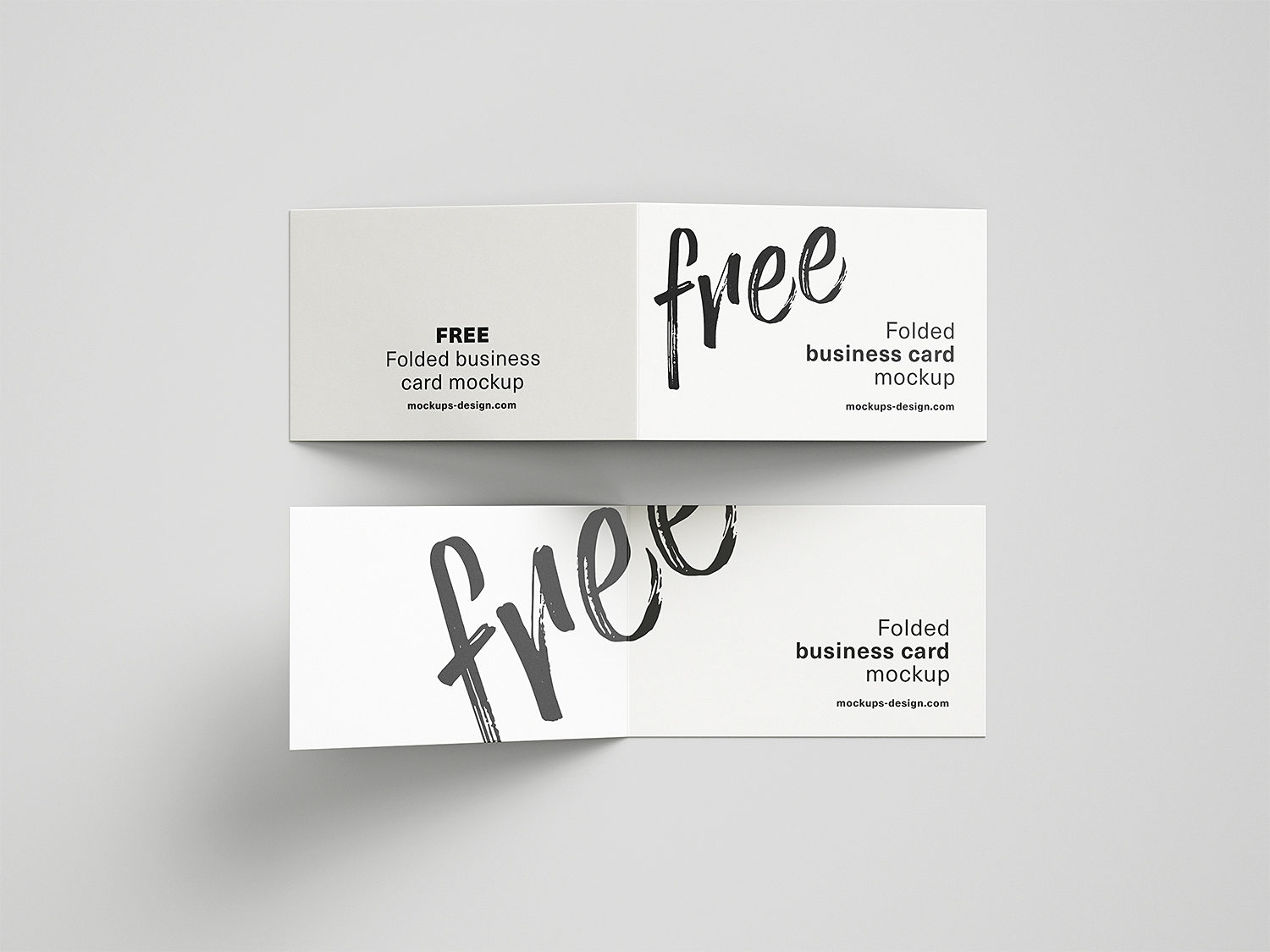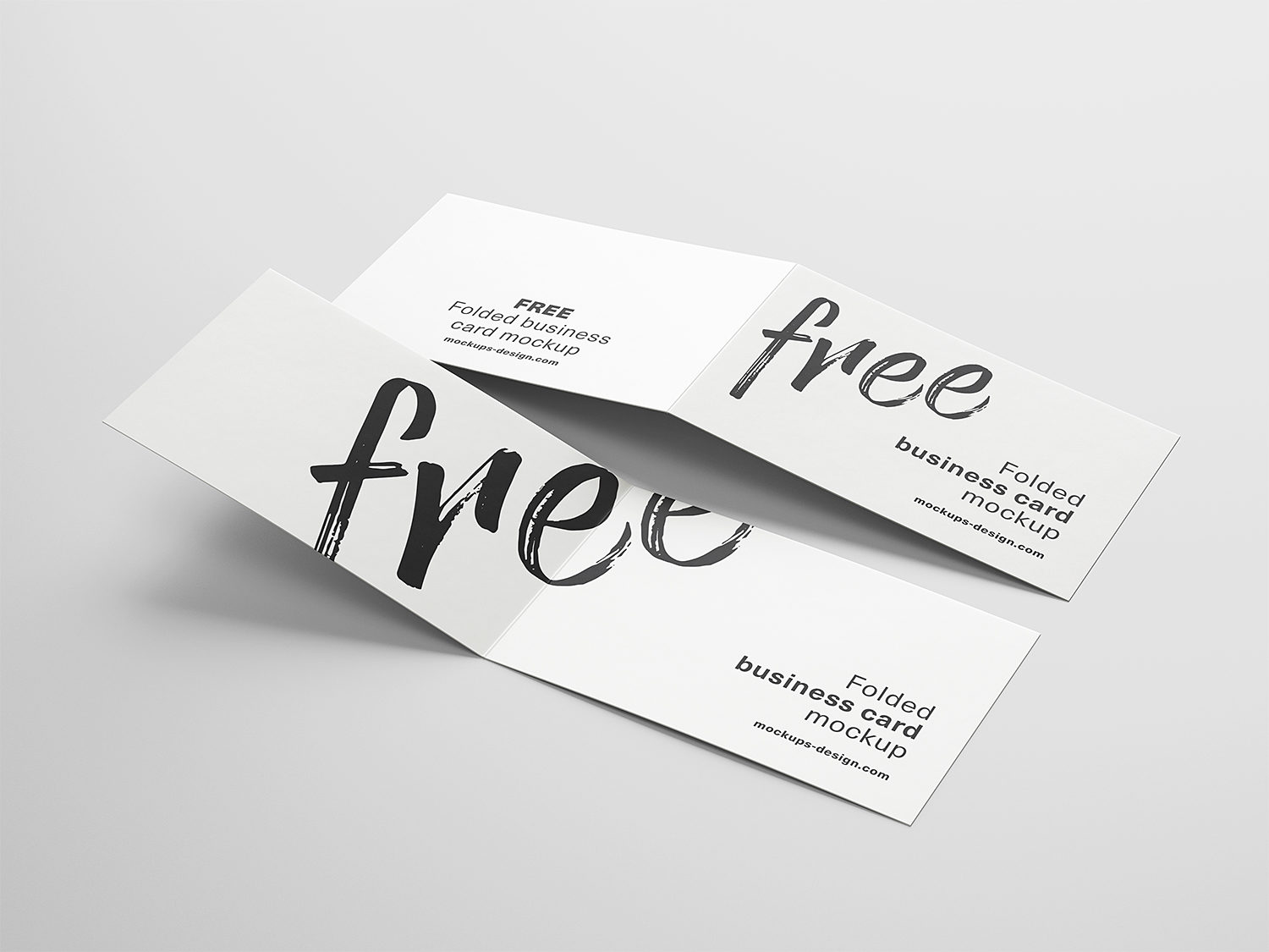 Free folded business cards mockup to showcase your branding design. Add your work to inside the smart object and enjoy. Thanks to Mockups Design for sharing this mockup for free.