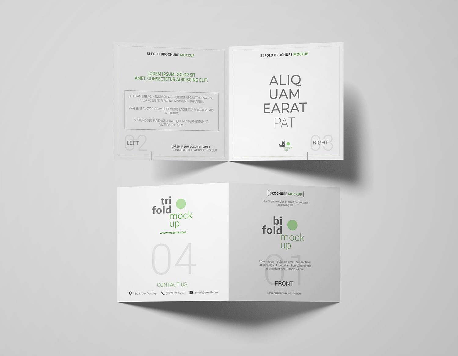 Free square bi-fold brochure mockup to showcase your work with a realistic look. Very simple edit with smart objects. Thanks to Yeven Popov for this freebie.