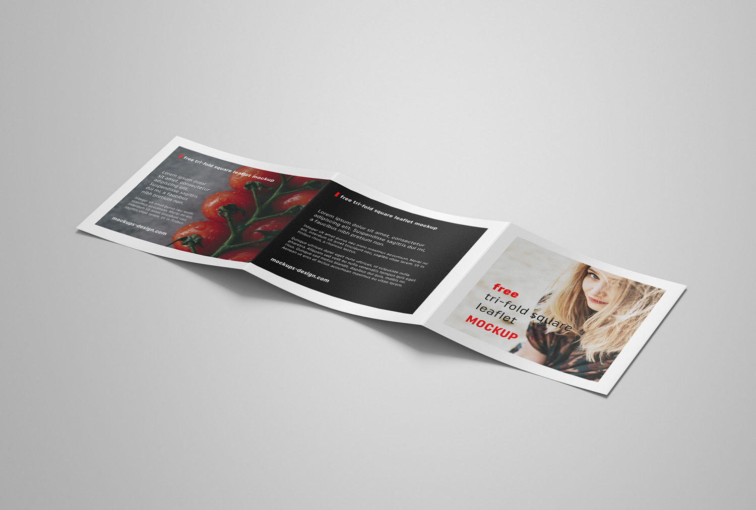 Free square trifold leaflet mockup helps you to present your design in a photorealistic way. Very simple edit with smart layers. This mockup is free for both personal and commercial purposes. Thanks to Mockups Design for sharing these mockups for free.