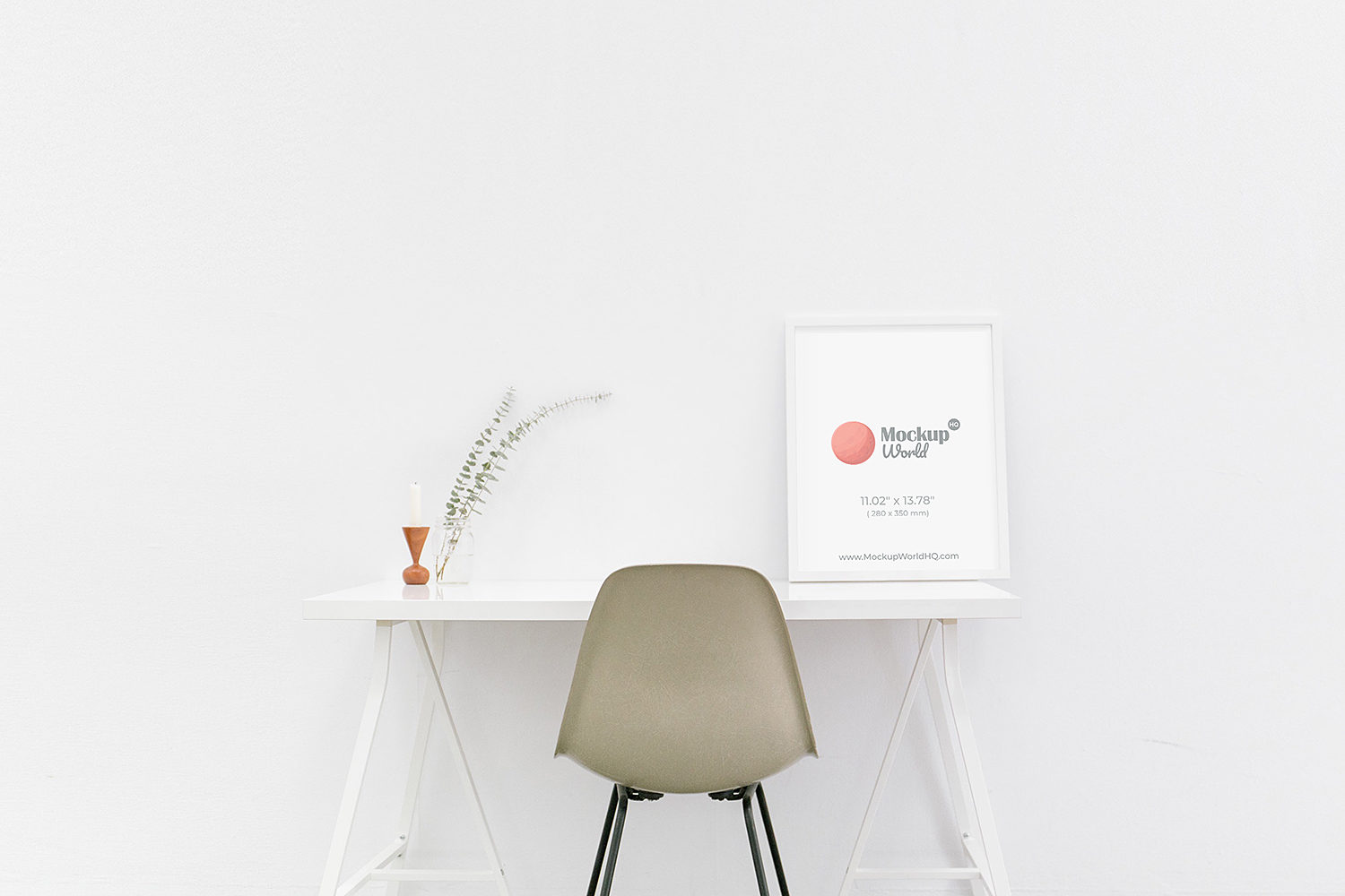 Use this White photo frame mockup on a table in a minimalist interior to showcase your work in a minimalist style. Add your image to inside the smart object and enjoy your work. Canvas size: 11.02″ x 13.78″ (280 x 350 mm).