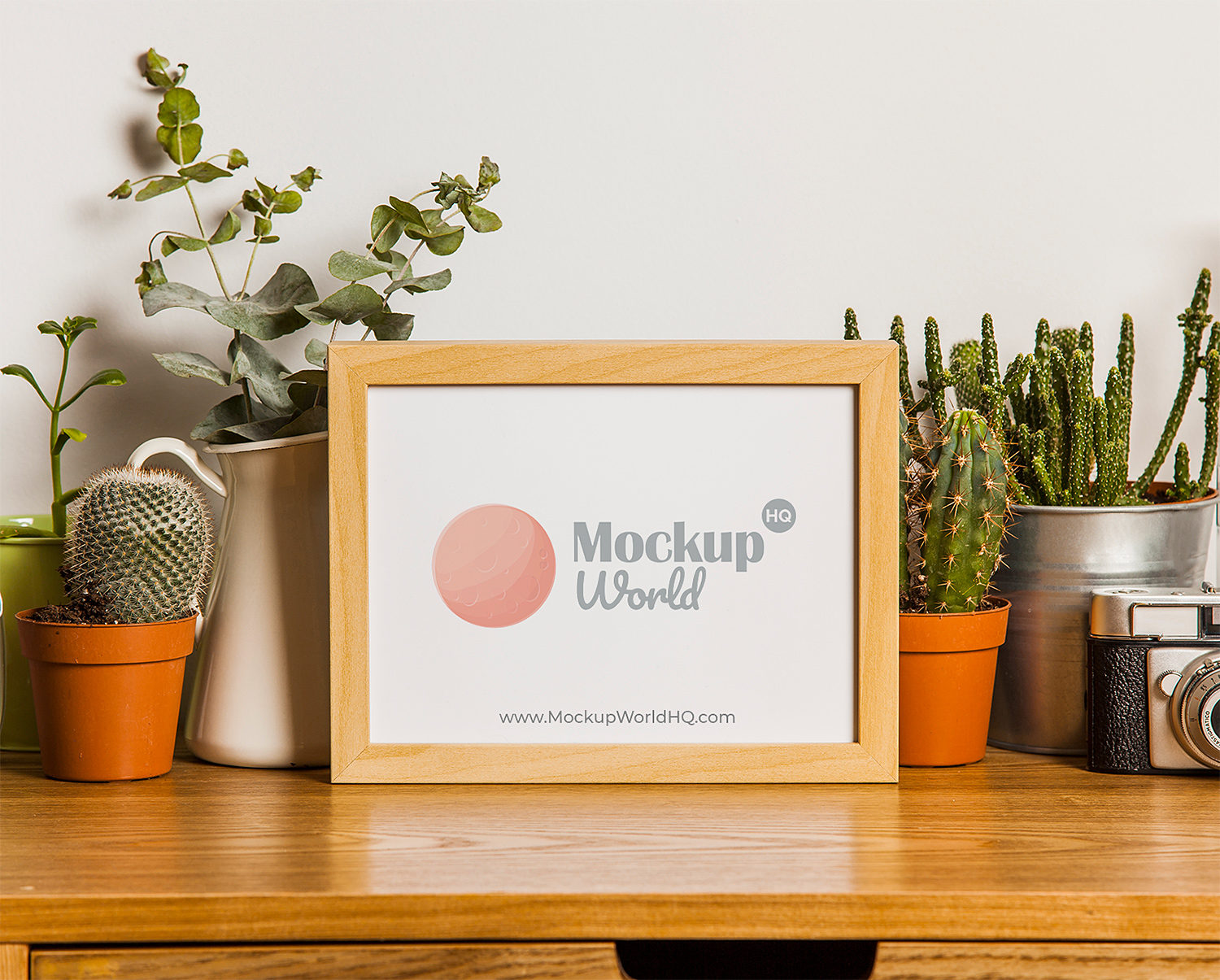 Wood photo frame free mockup to showcase your work in a photorealistic look. Smart Objects allow you to edit this mockup very easily. Just place your design inside them. Enjoy!
