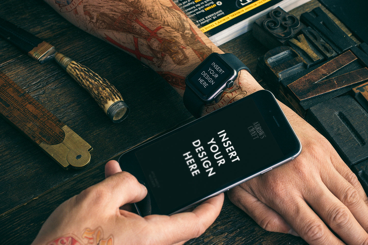 Useful Apple Watch & iPhone 6 Mockups Free helps you to showcase your app design in a photorealistic way. Easy to customize with Smart Objects. This mockup is free for both personal and commercial purposes. Enjoy!