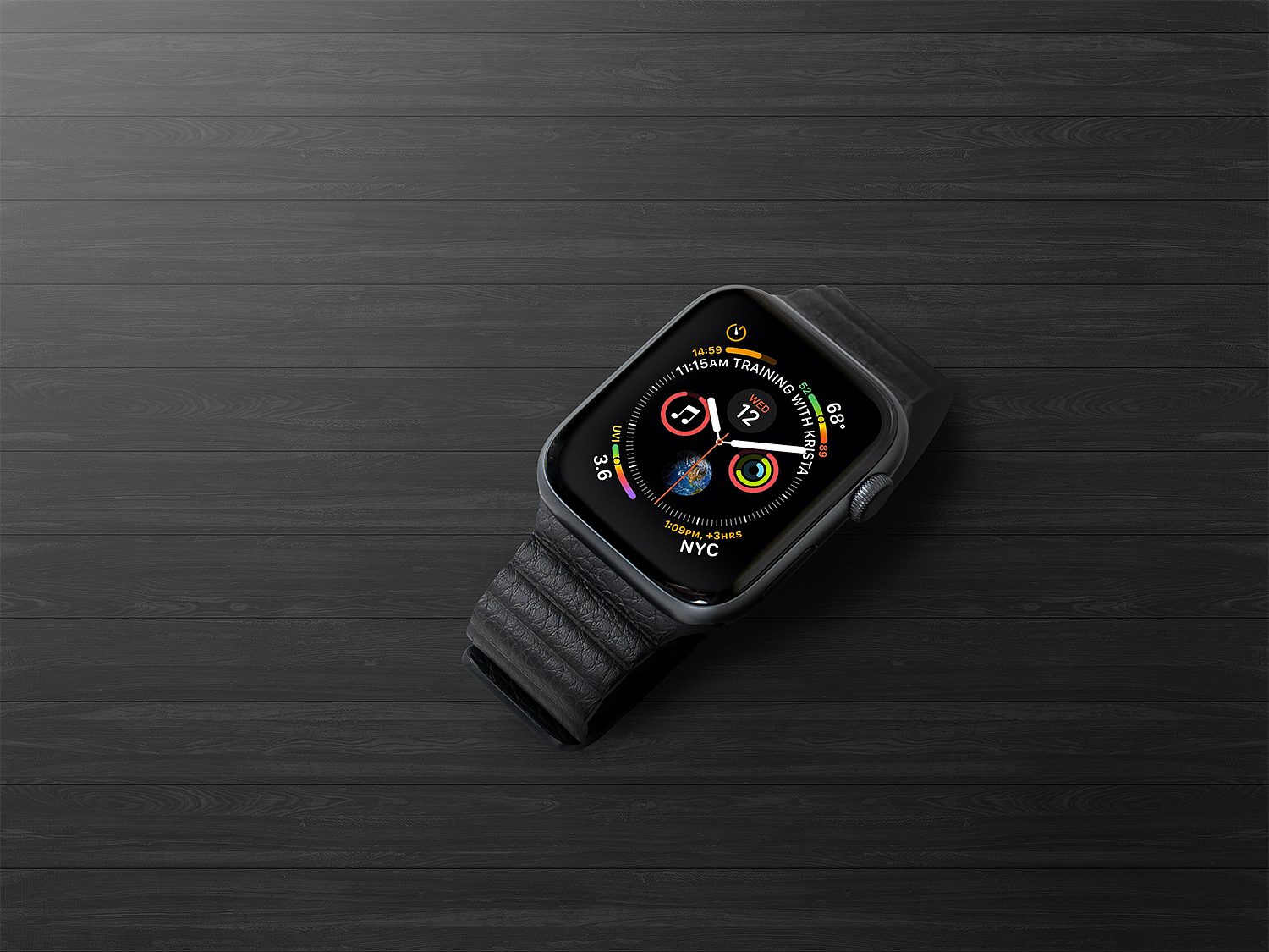 Free Apple Watch Series 4 mockup to showcase your UX/UI design or app screen presentation on Apple Watch screen in a photorealistic way. Add your image to inside the smart object and enjoy your work.