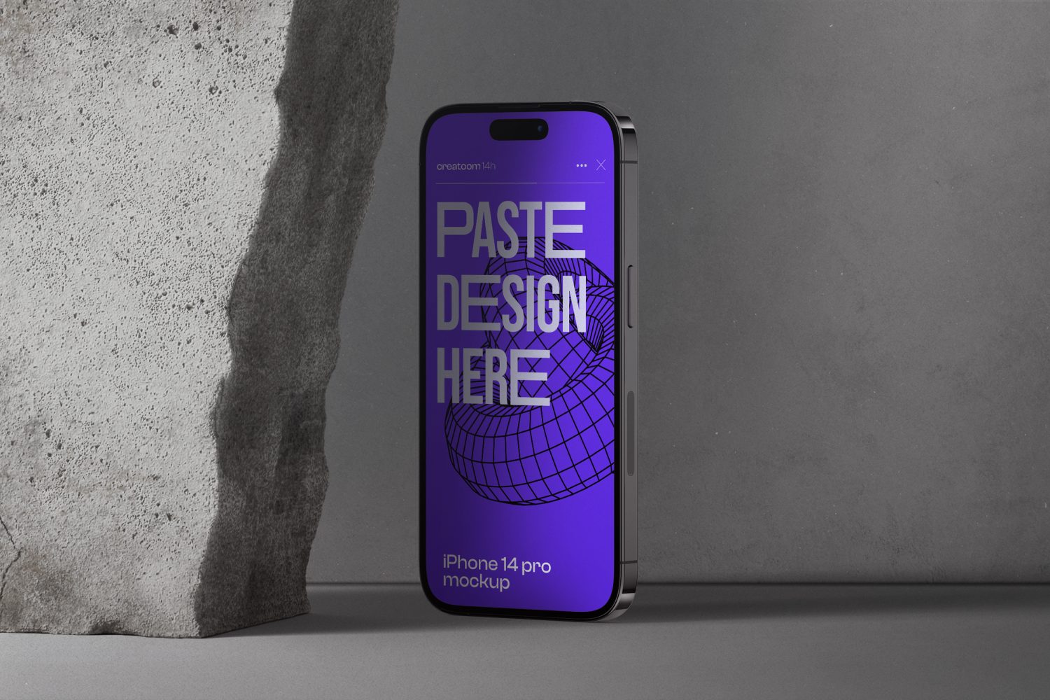 Introducing our iPhone 14 Pro with Stone Free Mockup, a captivating blend of cutting-edge technology and natural elegance. This high-quality mockup allows you to showcase your app interfaces, mobile designs, or digital content on the latest iPhone model, seamlessly integrated into a stylish stone background. The smart object layers make it easy to replace the screen with your own content, ensuring a realistic and high-quality representation of your digital designs. The high-resolution details capture the sleek design of the iPhone 14 Pro and the natural texture of the stone, providing a visually appealing backdrop for your work.