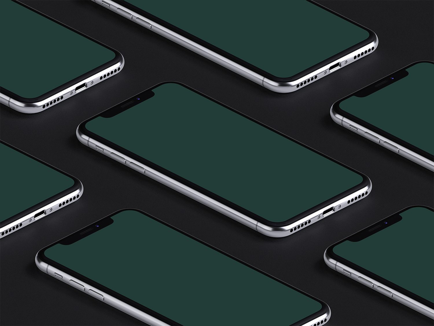 Isometric iPhone X PSD mockup to showcase your UI/UX design or app presentation on an iPhone screen in a minimalistic style. Add your image inside the smart object and enjoy your work.