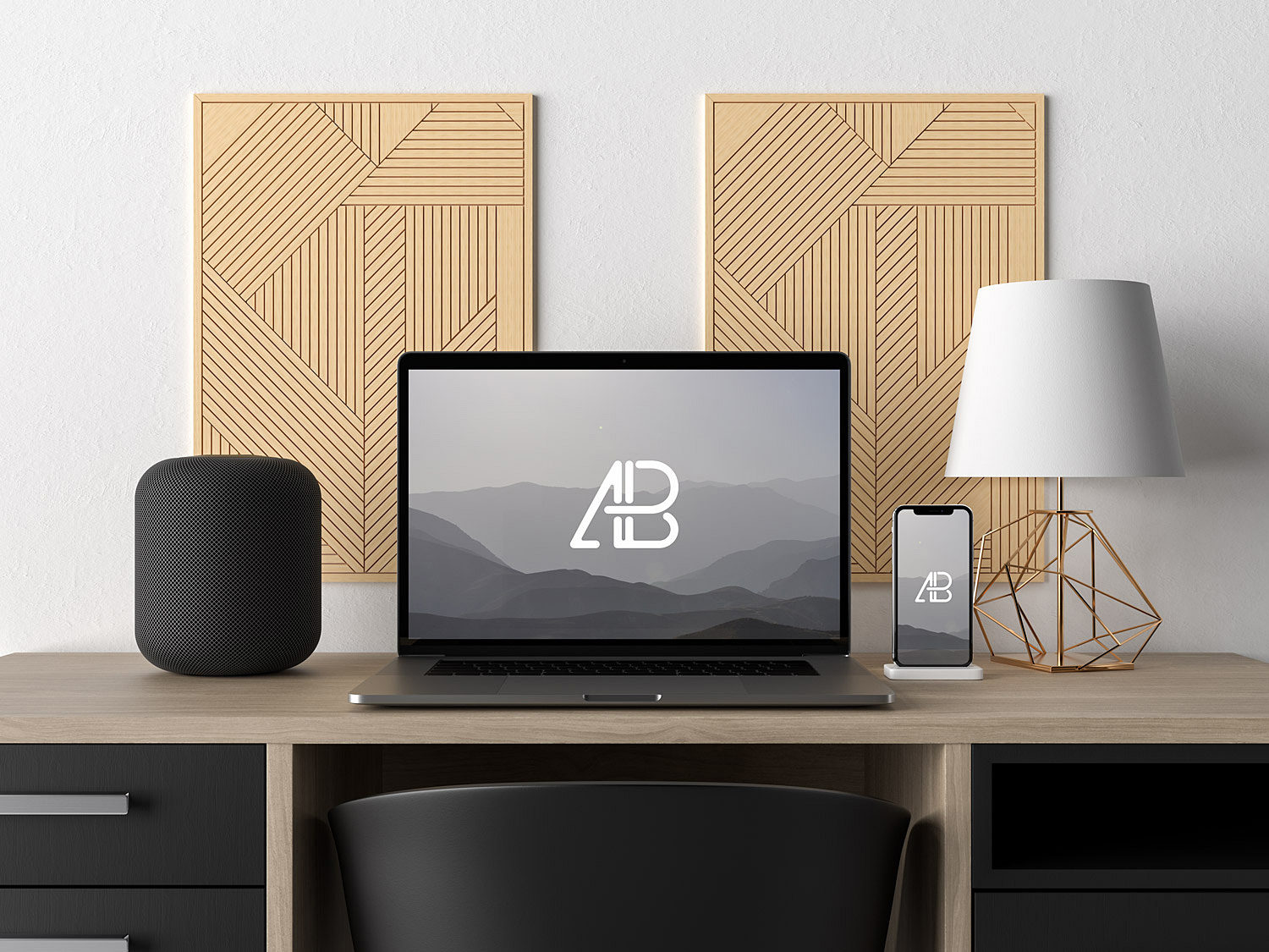 You can use MacBook Pro and iPhone X Workspace Mockup to showcase your design or presentation on MacBook screen. Add your image to inside the smart object and enjoy your work. Thank you.