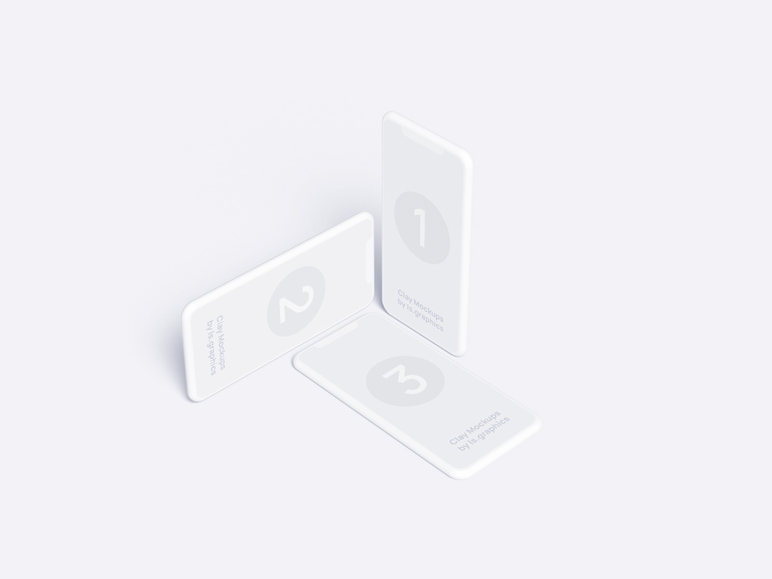 Three iPhone Clay Free Mockups to showcase your app presentation in a photorealistic look. This free PSD mockup is easy to edit with smart objects. Enjoy!
