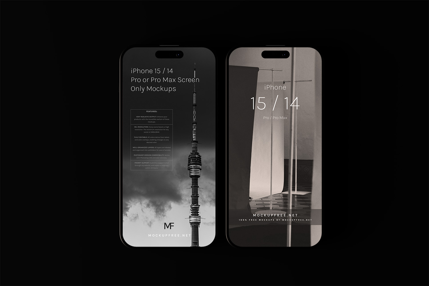 iPhone 15 Dark Background Free Mockups