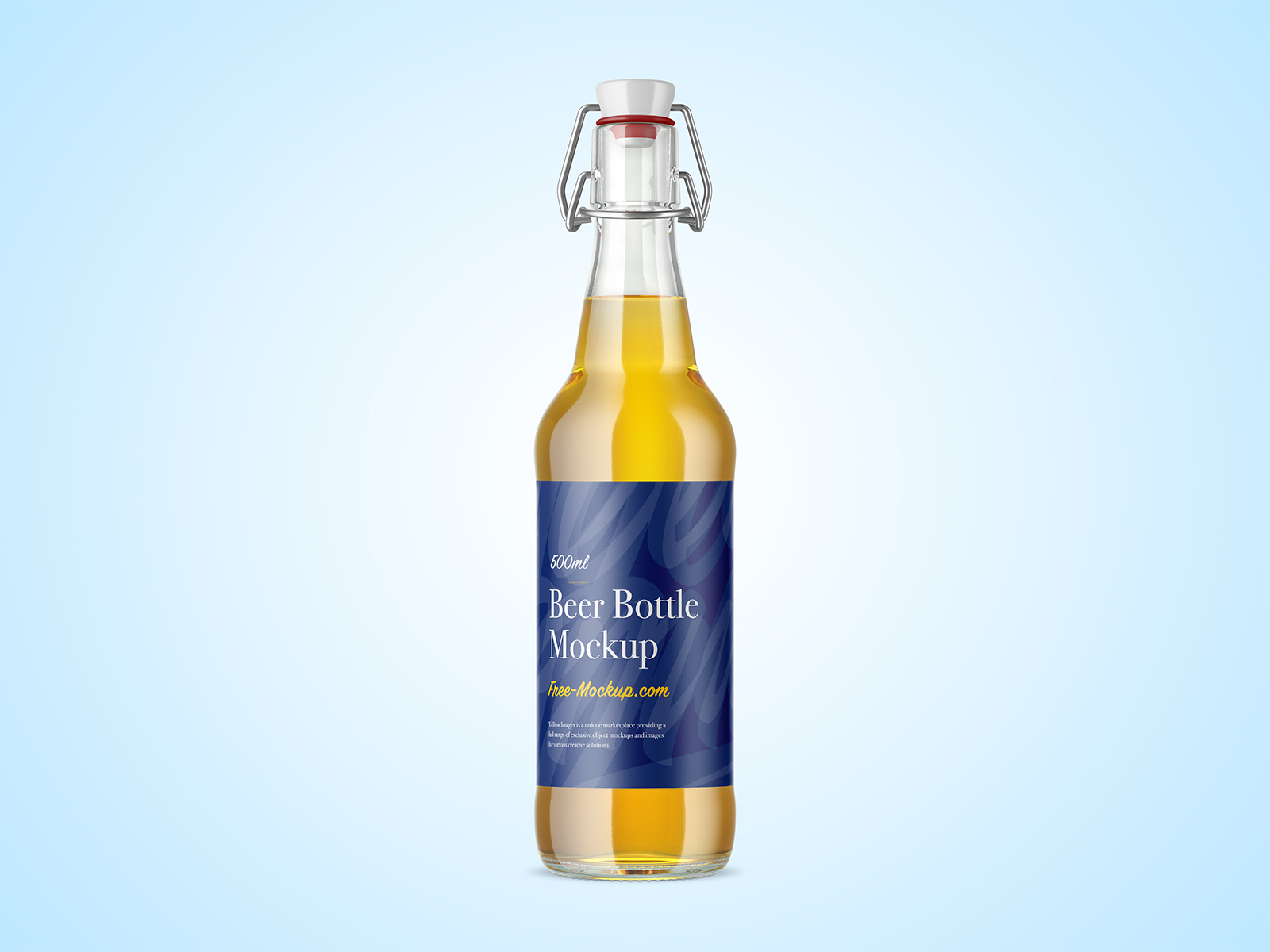 Clear Glass Beer Bottle Free Mockup with Swing Top Cap